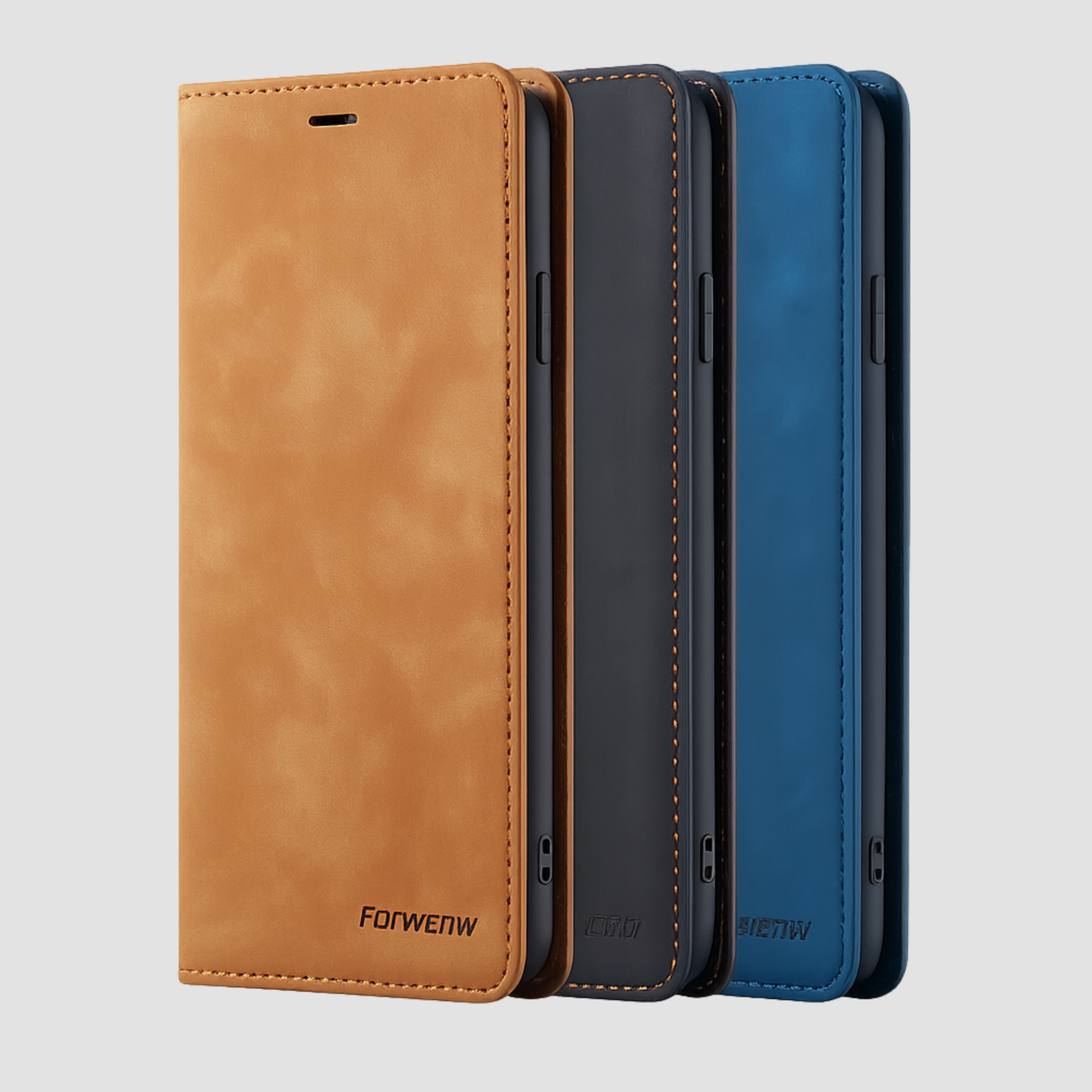 Protect your iPhone in style with our premium Leather iPhone Case featuring a convenient wallet and card slot. Available in three elegant colors — brown, blue, and black — this case suits your personal style while providing reliable protection.